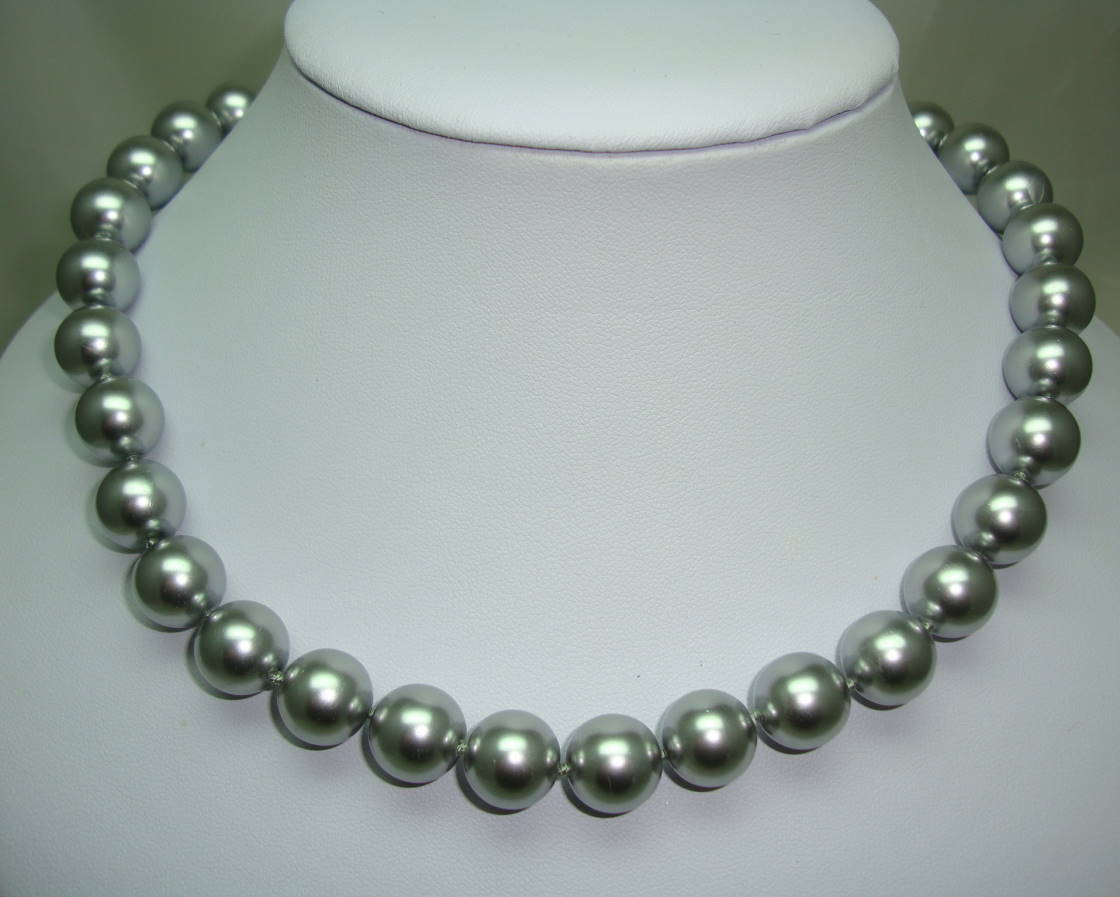 1980s Quality Grey Faux Pearl Glass Bead Necklace Fab Diamante Clasp!