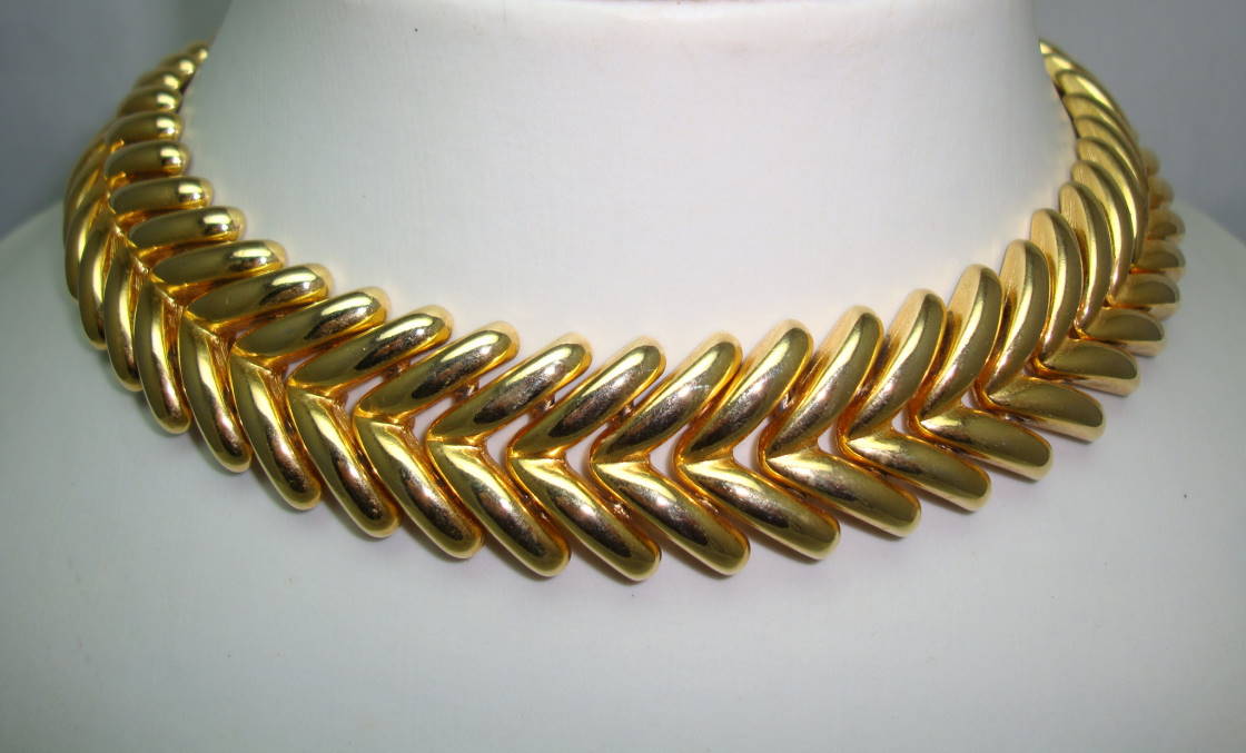 50s Signed Heavy Fancy Link Gold Articulated Collar Designer Necklace