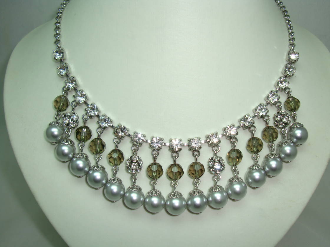 50s Style Coast Faux Pearl Crystal and Diamante Drop Cascade Necklace