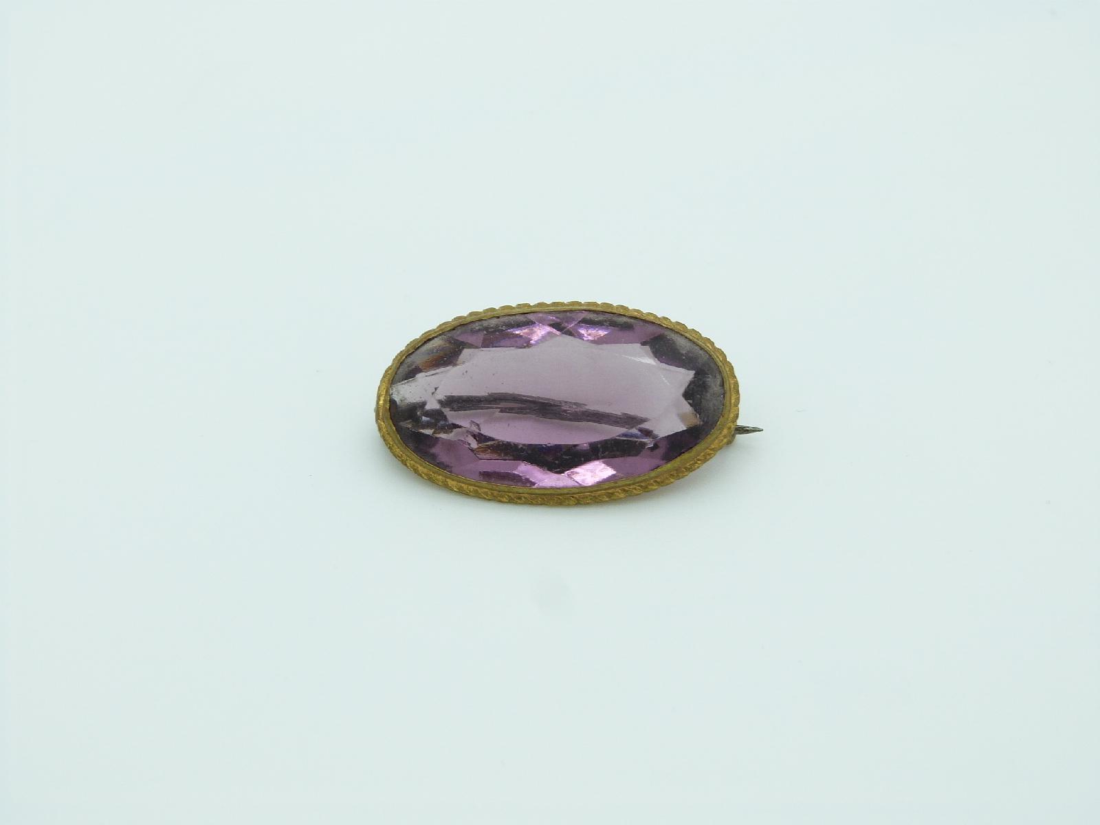 Antique Victorian Pretty Purple Paste Glass Gilt Metal Brooch 3.5cms