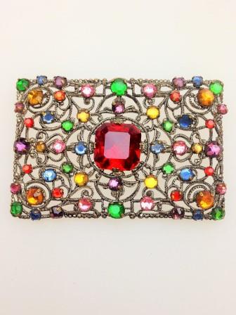 Fab Vintage 30s Czech Goldtone Filigree Multicoloured Diamante Brooch