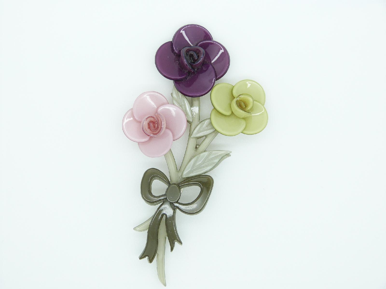 Fabulous Big Baby Posey Of Roses Brooch Pink Purple and Green Flowers