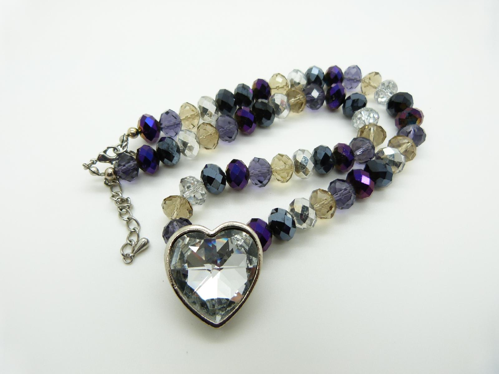 Multicoloured Crystal Glass Bead Necklace with Heart Shaped Crystal Pendant