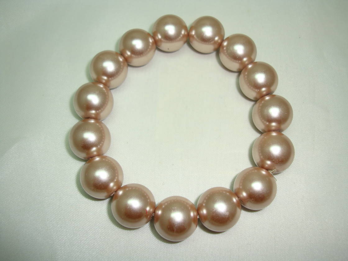 Great soft gold /pink coloured chunky glass faux pearl bead stretch bracelet, excellent condition as bracelet is a new modern piece, looks classy on, great weight to this one.