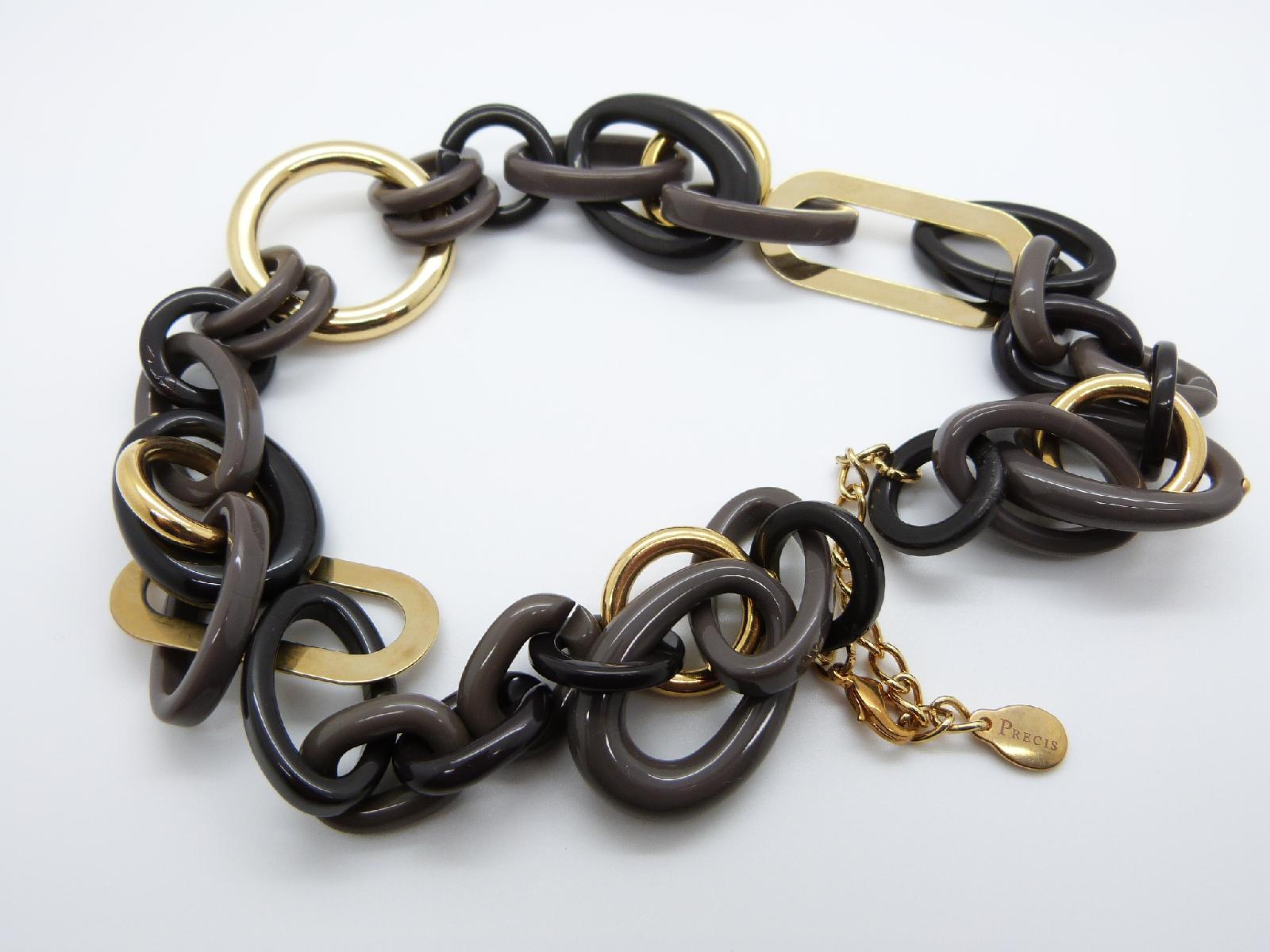 Lovely chunky brown and gold chain link contemporary necklace (signed Precis made in Italy on tag), excellent condition, looks amazing on, fastens with lobster claw clasp, a really well made statement necklace by Precis, length 66cms including extender chain.
