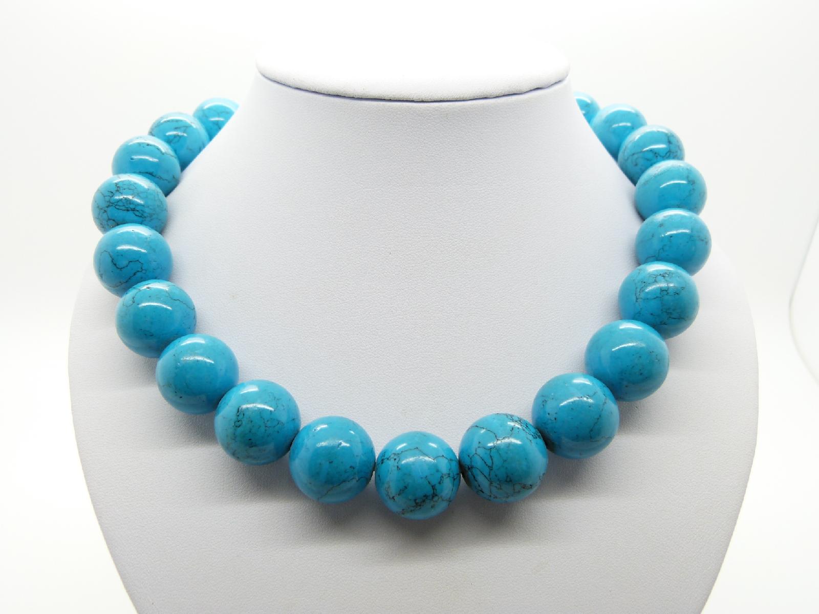 Amazing real turquoise chunky bead statement necklace, fastens with lobster claw clasp beautiful smooth tactile beads, cold to the touch, excellent condition, looks stunning on, measures 45cms in length.  This is a weighty good quality piece, you will not be disappointed.