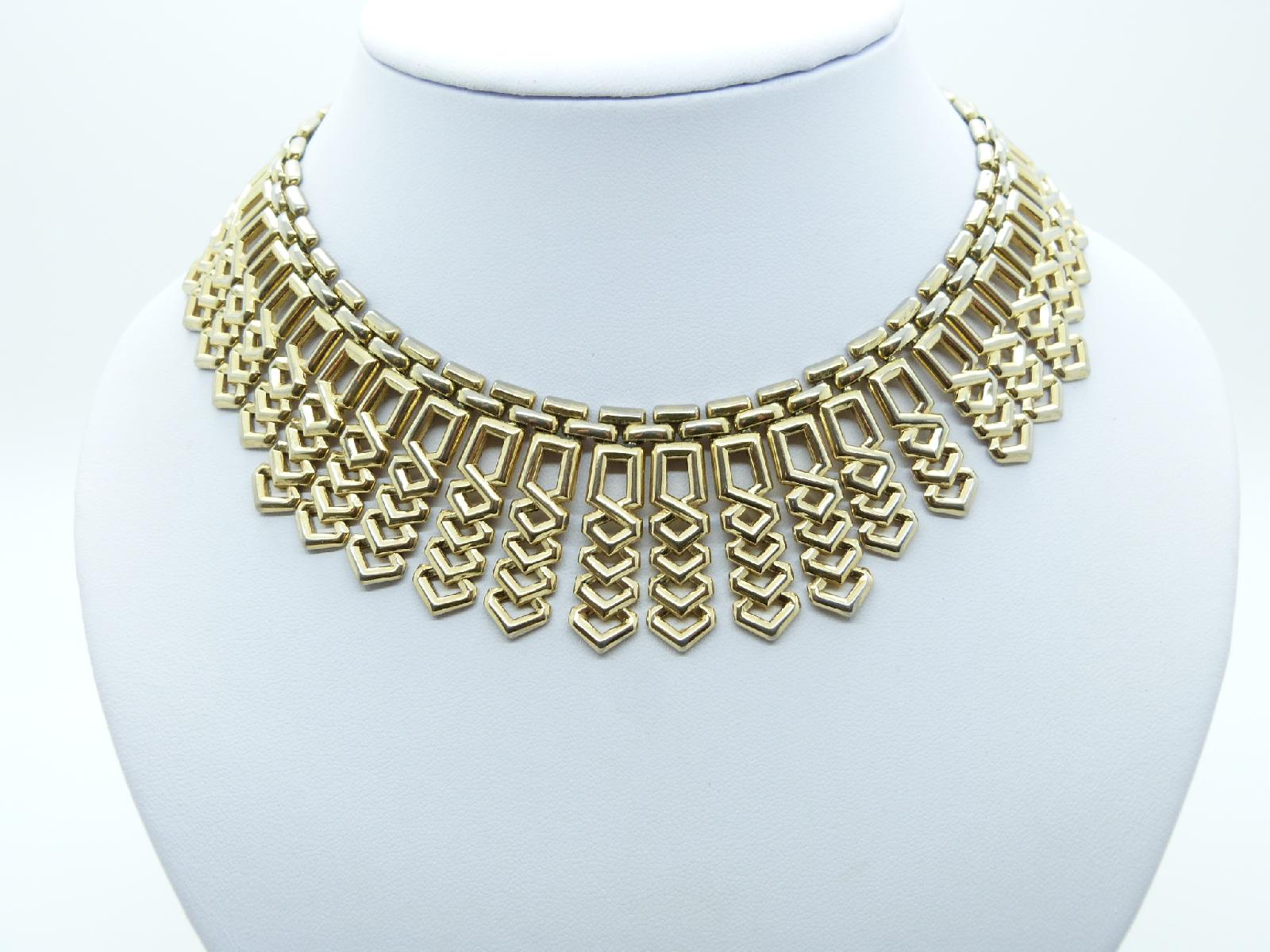 Stunning Antique Victorian Gold Base Metal Ornate Link Collar Necklace