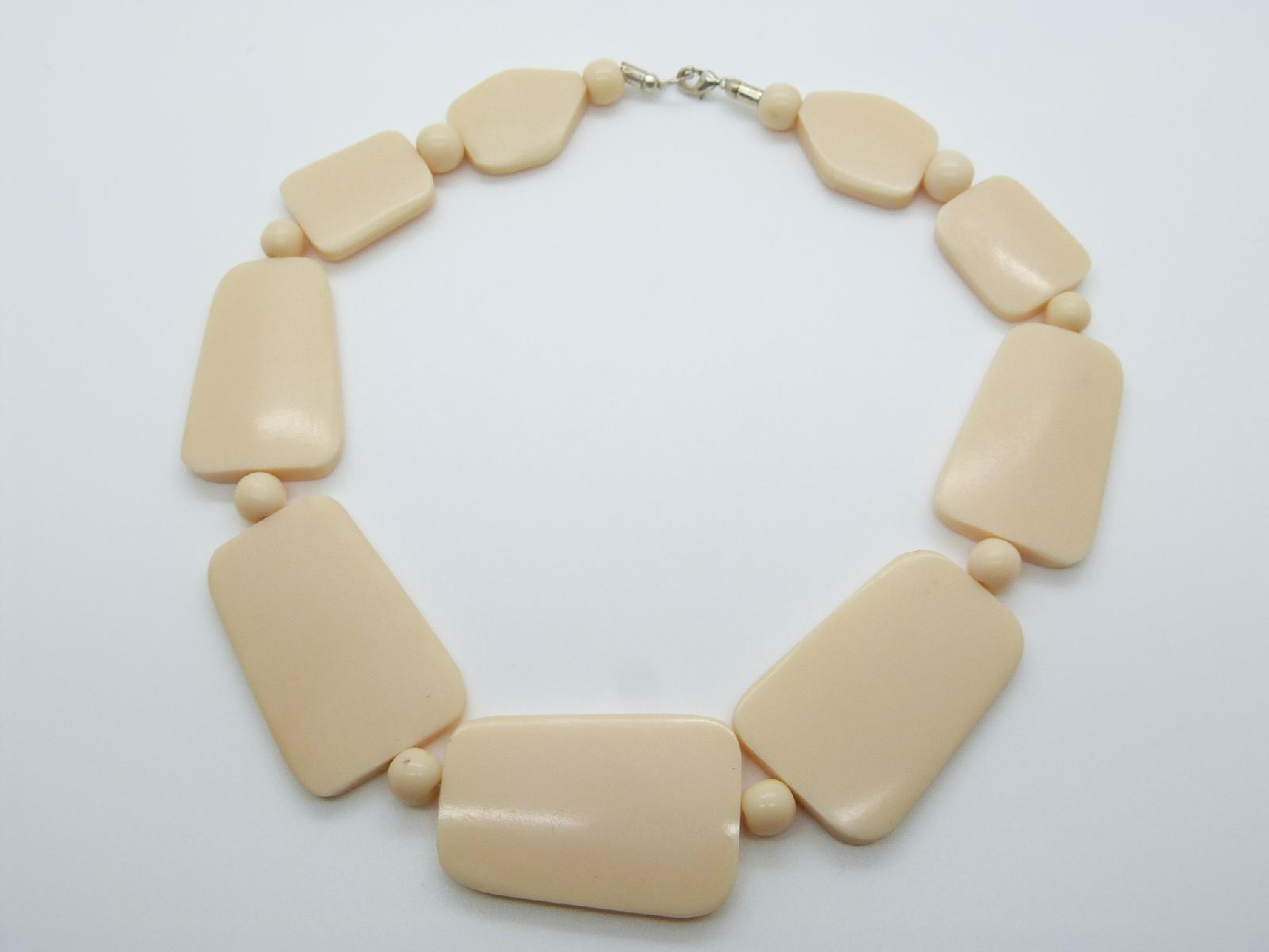 Stylish and Chic Chunky Cream Bead Acrylic Plastic Statement Necklace