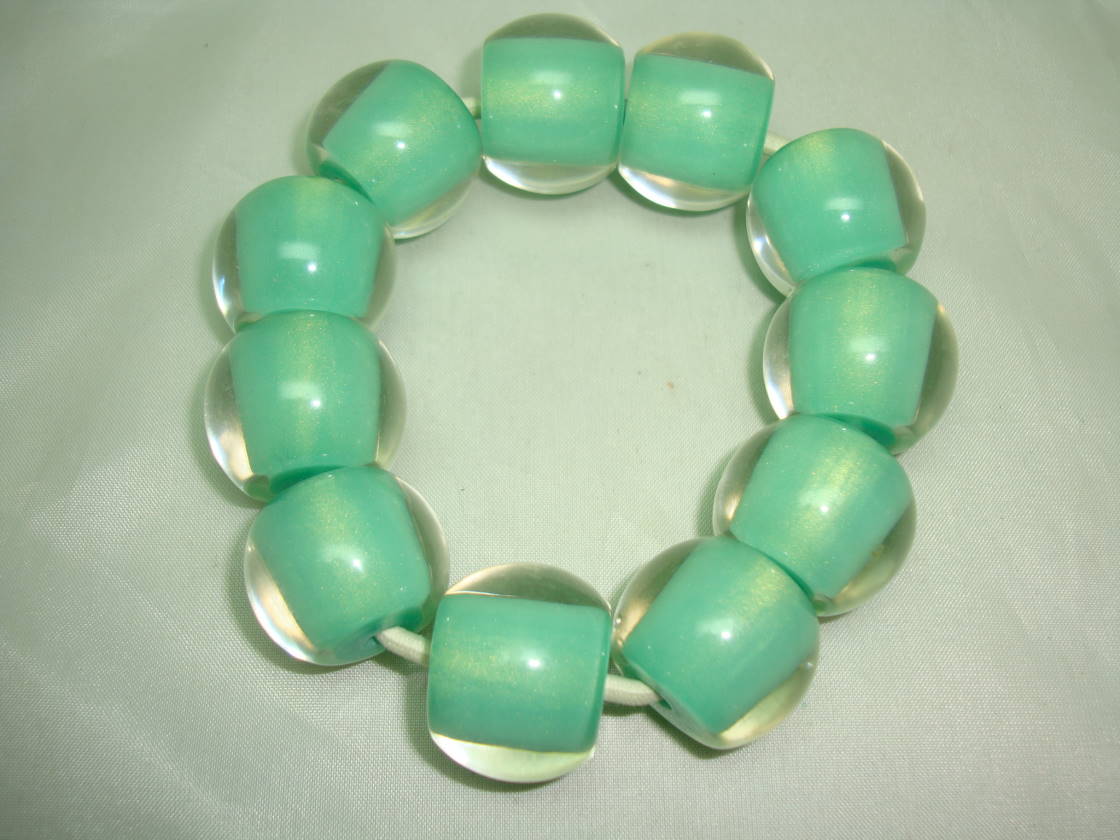 Unusual and Quirky Chunky Green and Clear Lucite Bead Stretch Bracelet