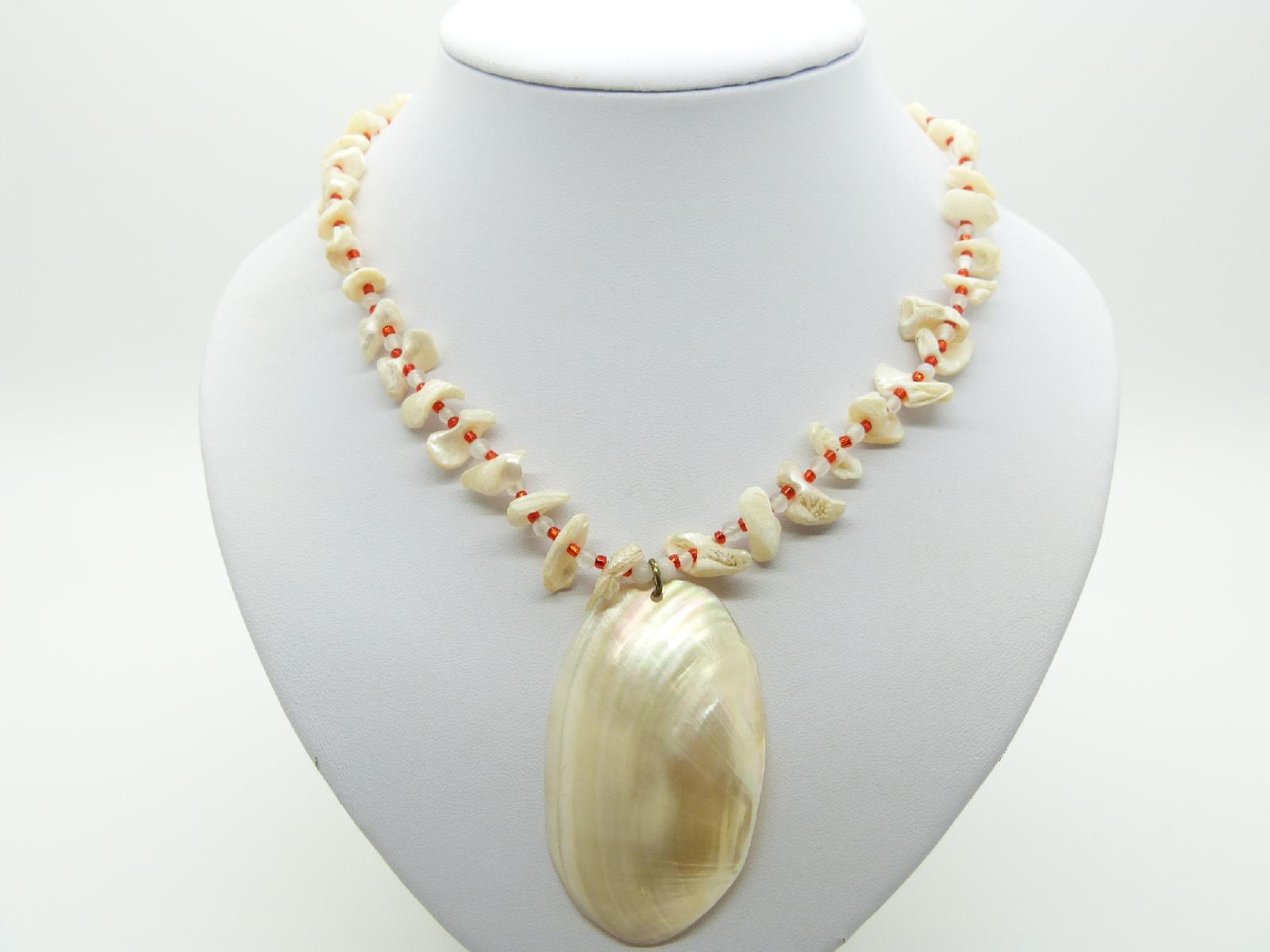 Very Pretty Mother of Pearl Chip Bead Necklace with Large MOP Pendant