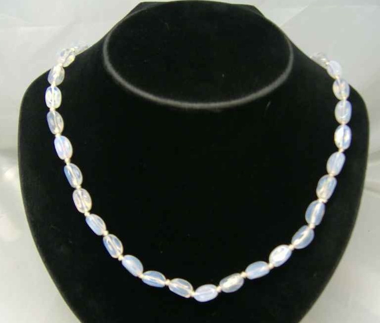 Vintage 30s Opaline Glass Bead Hand Knotted Necklace