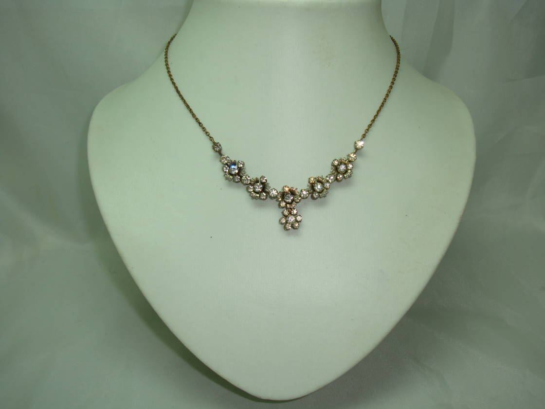 We are pleased to offer this beautiful vintage 1930s Art Deco quality articulated paste/diamante flower drop goldtone necklace which is just fab.  Excellent condition, looks really pretty on, all stones clawed, intact and original, a great 30s necklace.