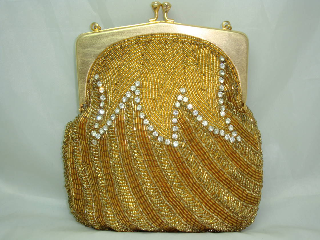 Vintage 50s AMAZING Gold Bead  Diamante Evening Handbag