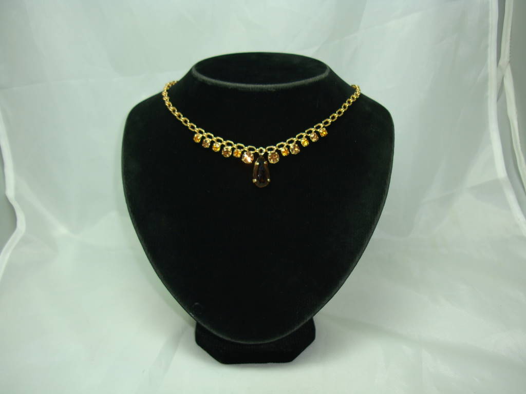 Vintage 50s Amber Citrine Diamante Drop Gold Necklace