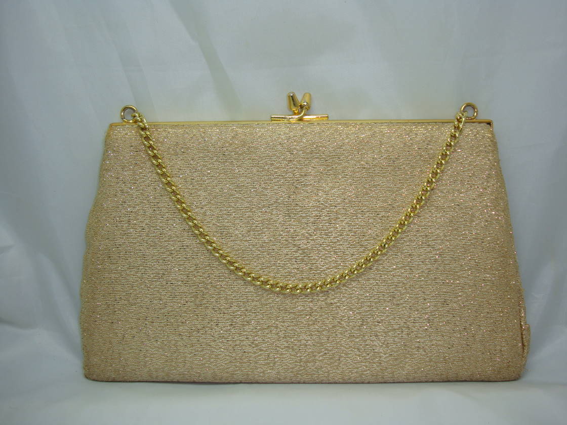 Vintage 50s Cute Gold Lame Sparkle Evening Handbag