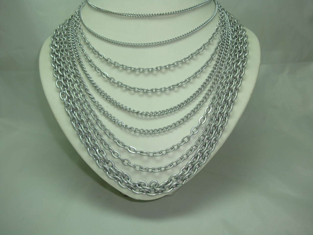 Vintage 50s Fab 9 Row Graduating Silver Chain Necklace