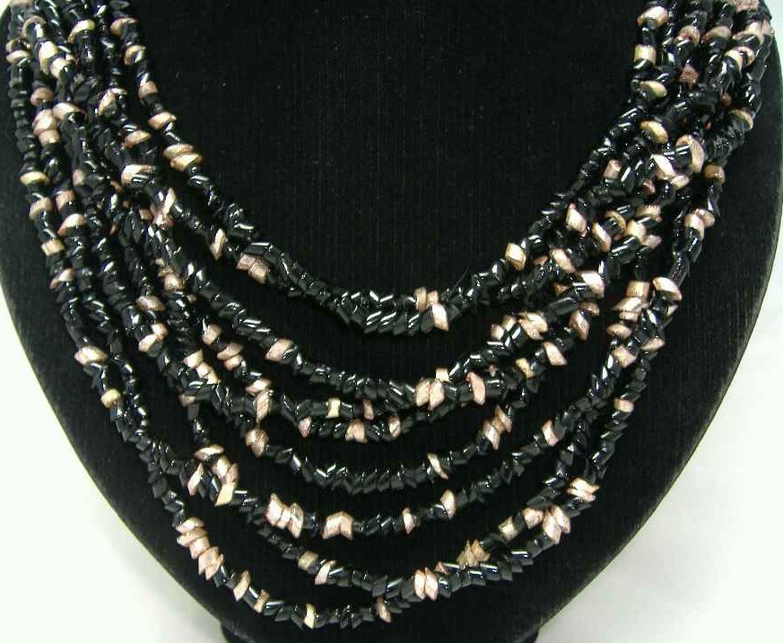 Vintage 50s Fab Black & Gold 9 Row Glass Bead Necklace