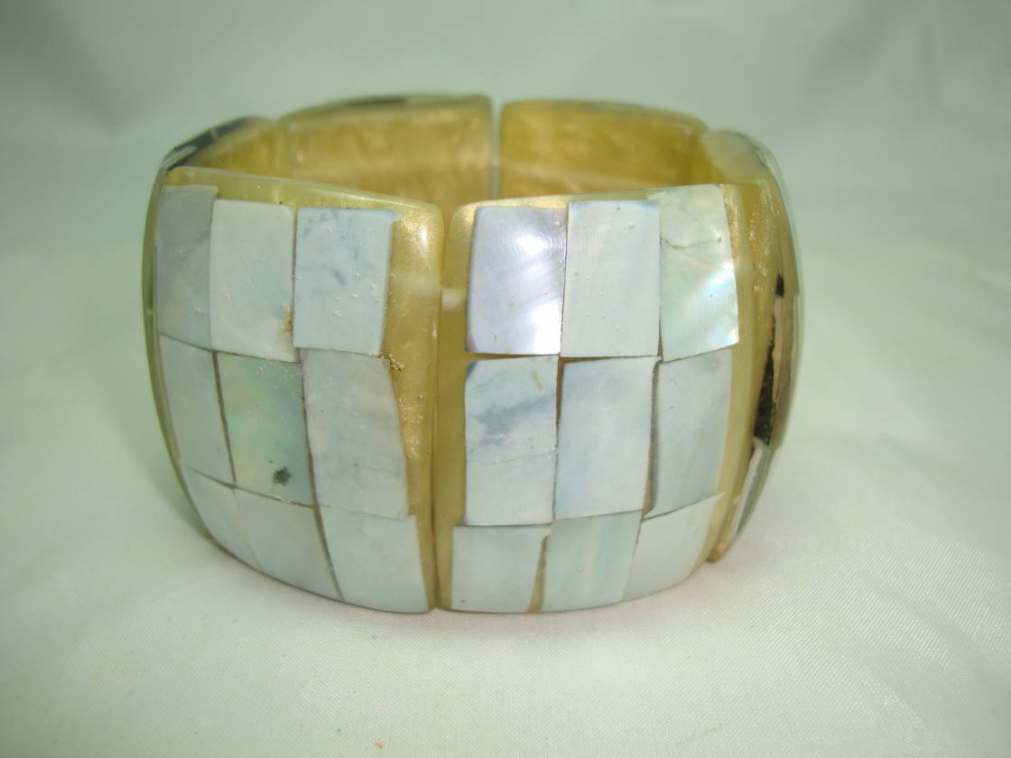 Vintage 50s Fab Wide Chunky Lucite Mother of Pearl Panel Bracelet