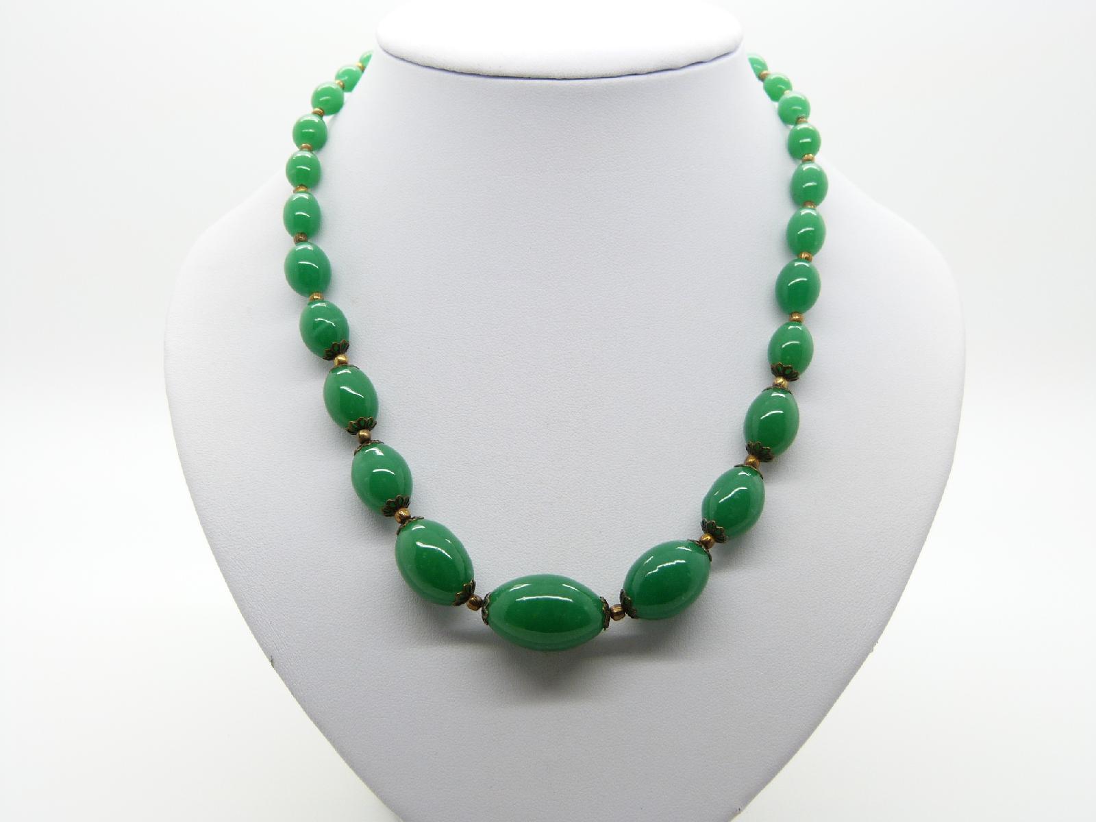 Vintage 50s Lovely Green Glass Graduating Bead Necklace 50cms
