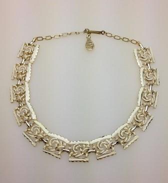 Vintage 50s Signed Jewelcraft Cream Enamel Fancy Link Goldtone Necklace