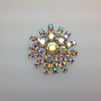 Vintage 50s Sparkling AB Diamante Starburst Silvertone Brooch Fabulous! 5cms