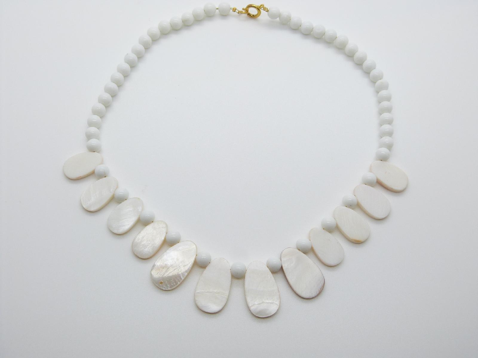 Vintage 50s White Glass and Mother of Pearl Drop Bead Necklace Stunning