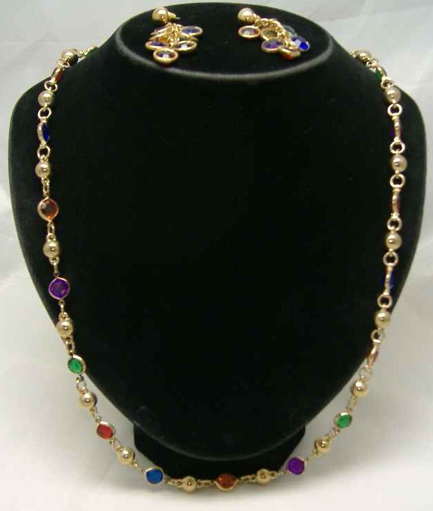 Vintage 60s Harlequin Diamante Gold Necklace & Earrings Set Fab