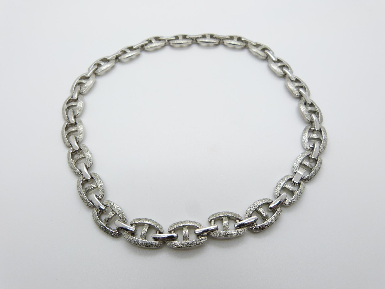Vintage 60s QualityTextured Fancy Link Modernist Silvertone Necklace 45cms