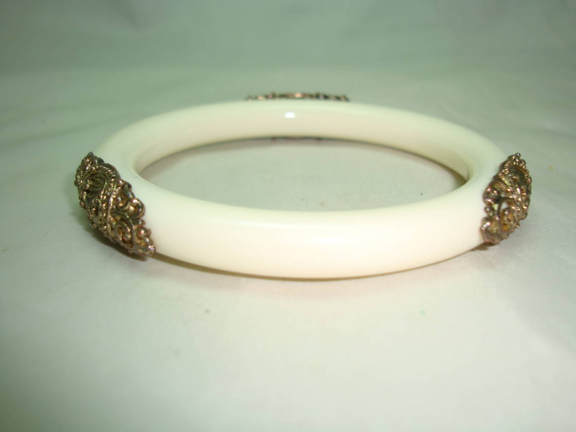 Vintage 70s Fab Cream Lucite and Goldtone Filigree Embellished Bangle