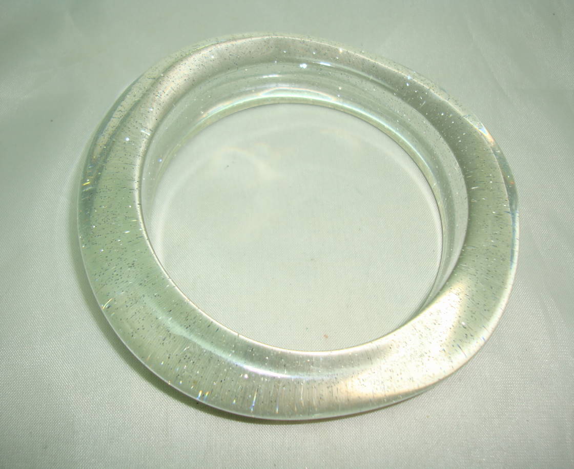 Vintage 70s Quirky and Fun Clear Lucite Sparkle Glitter Chunky Bangle