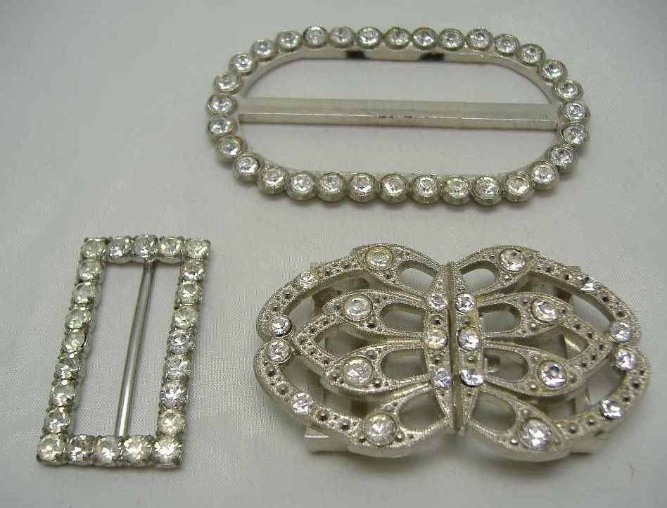 Up for your consideration are these three vintage 1970s sparkling diamante buckles which are just fab - excellent condition!