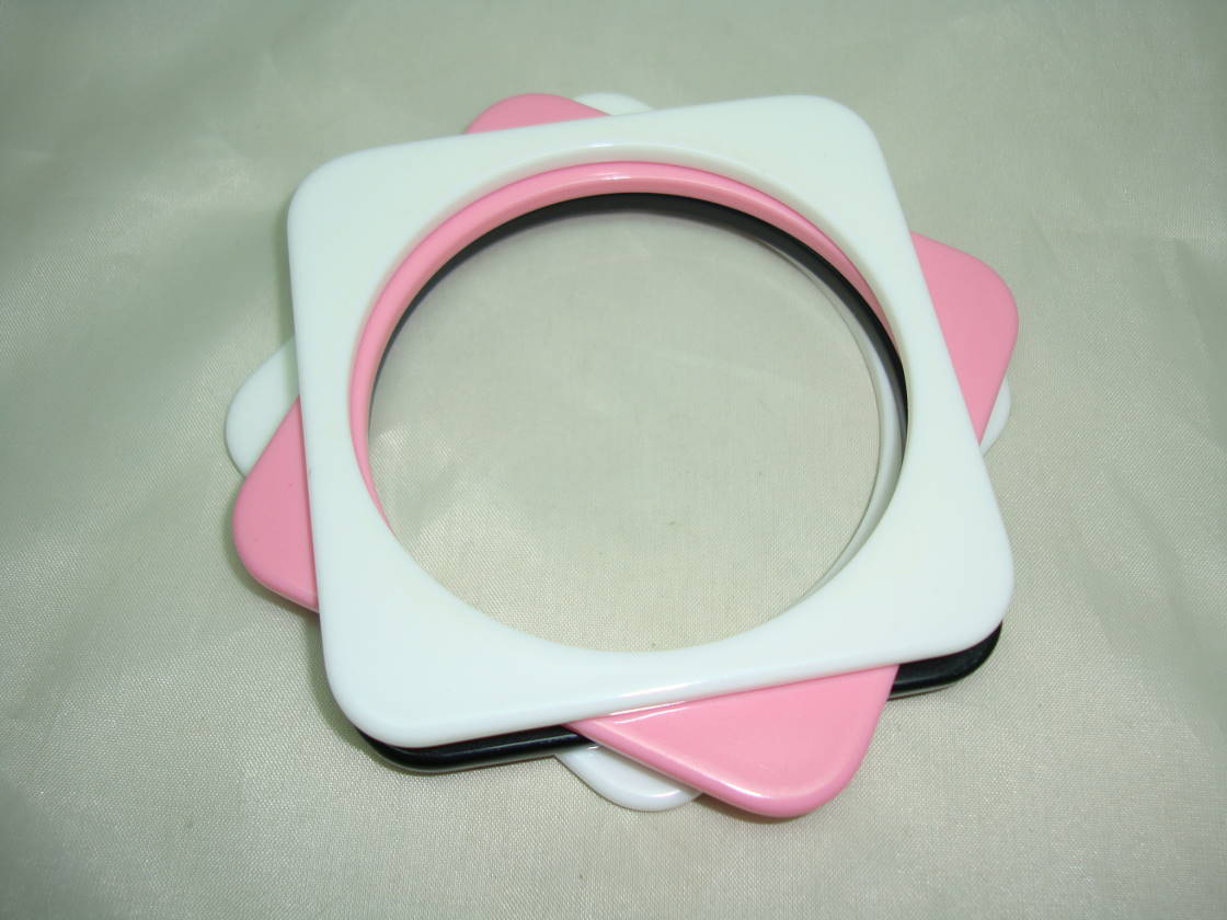 Vintage 80s Funky Set of Four White Black Pink Plastic Square Bangles