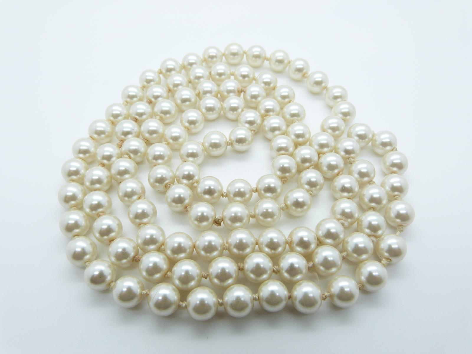Vintage 80s Heavy Faux Glass Pearl Bead Endless Necklace 120cms Quality!