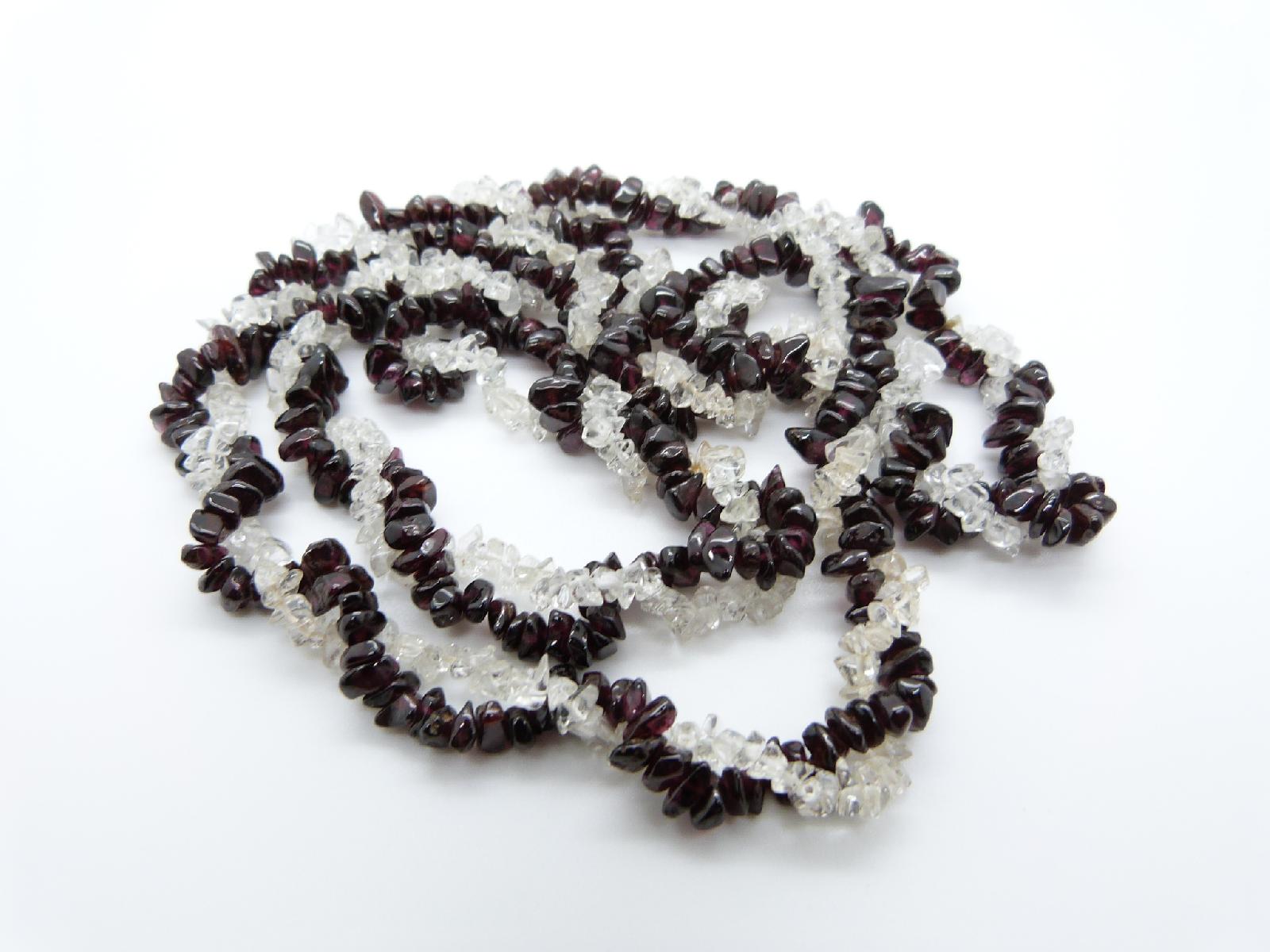 Vintage 80s Real Garnet and White Quartz Bead Two Row Twist Necklace 84cms