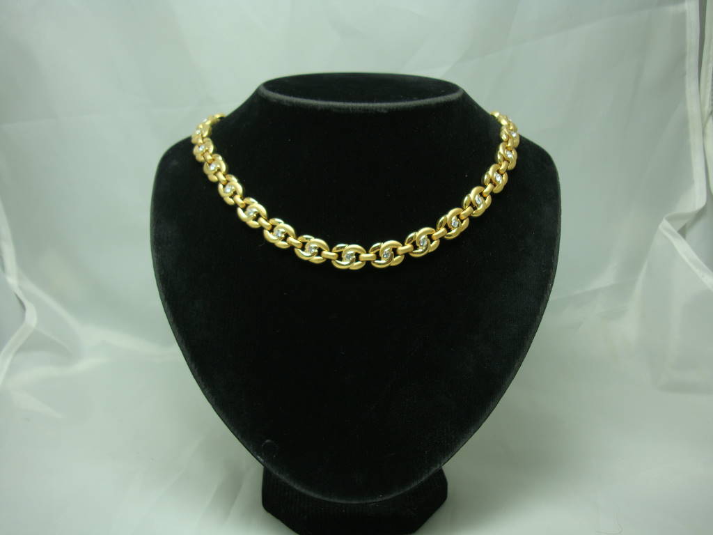 Vintage 80s Stunning Diamante Fancy Gold Link Necklace